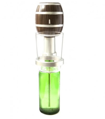 Escanciador de sidra con forma de barril, tiene brazo para colocar el vaso y no salpicarte las manos. Es un modelo que tiene una bateria de 12V y un motor que genera gran presion a la bomba para potenciar el aroma y sabor de la sidra.
